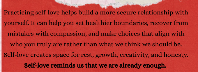 Filled with thoughtful prompts, affirmations, and reflective exercises, this zine invites you to explore what self-love really looks like beyond the clichés. You’ll be guided to celebrate who you are, tend to the parts of yourself that need care, and redefine what it means to feel worthy, without needing it to come from anyone else.